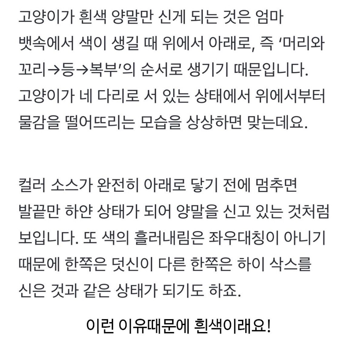 고양이가 흰 양말을 신는 이유