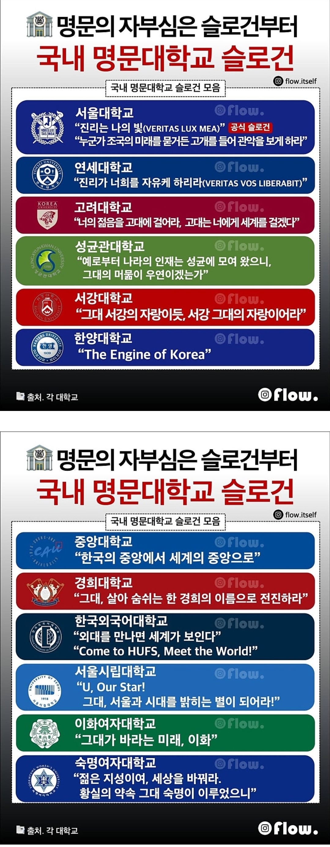 국내 명문대학교들 슬로건