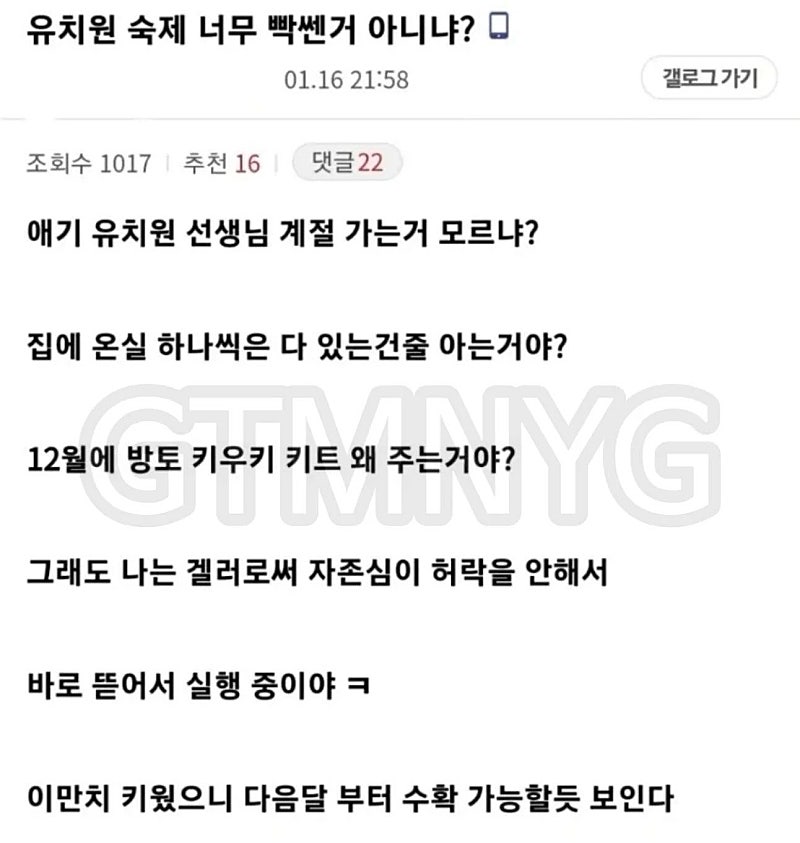 너무 빡센 유치원 숙제