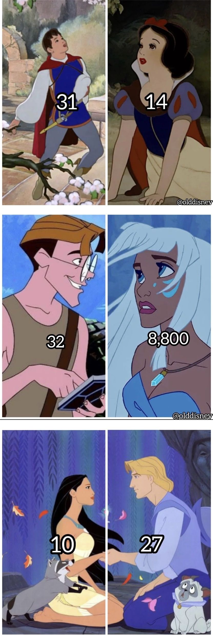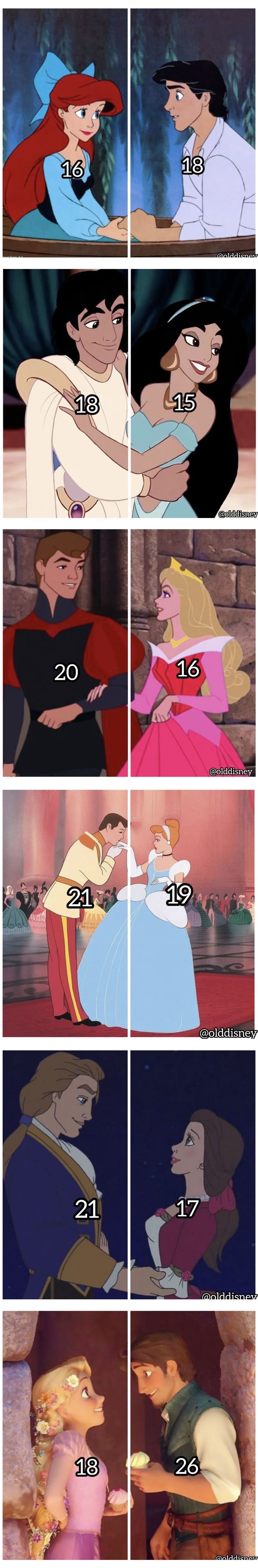 디즈니 프린세스 커플들의 나이 차