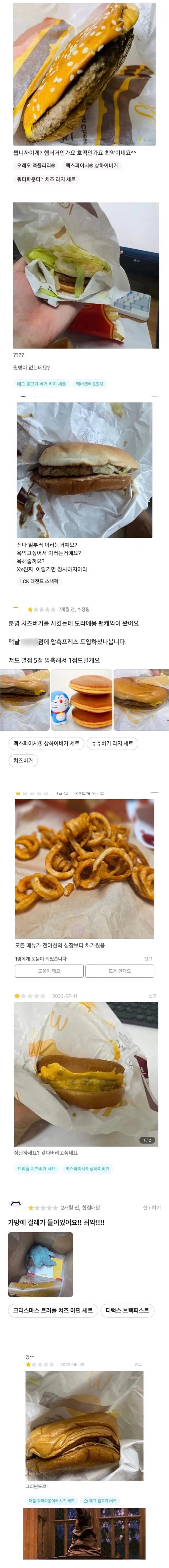 맥도날드 별점 1점 리뷰들