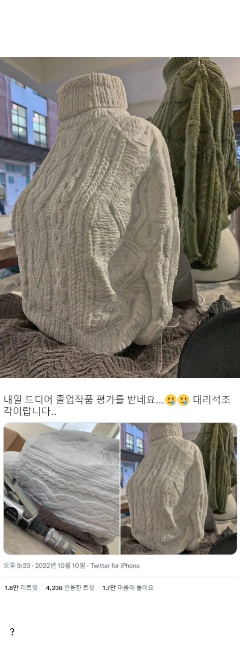 미대 졸업 작품으로 스웨터를 제출한 사람