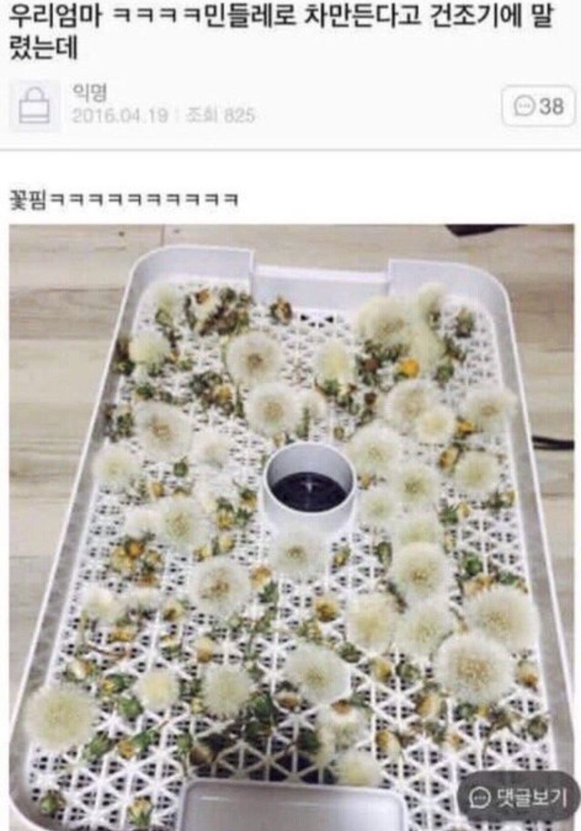 민들레를 건조기에 넣으면