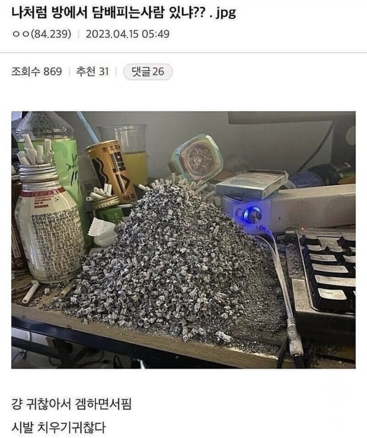 방에서 담배 피우는 사람