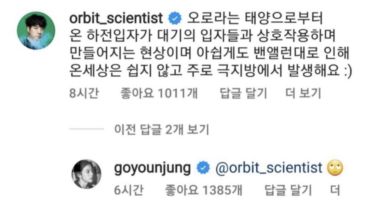 배우 고윤정 인스타에 나타난 궤도