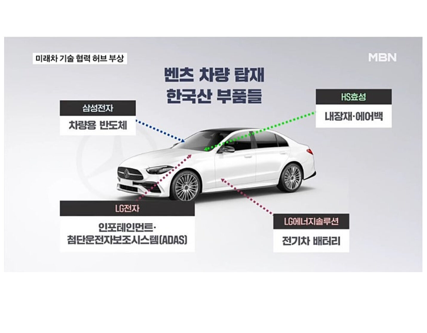 벤츠 차량 탑재 한국산 부품들