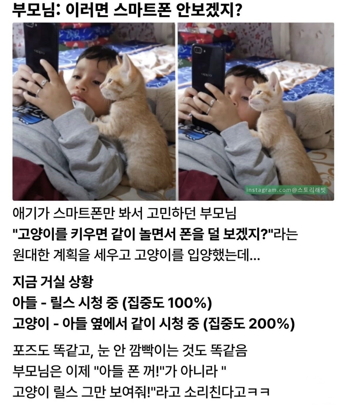 부모님: 이러면 스마트폰 안 보겠지?