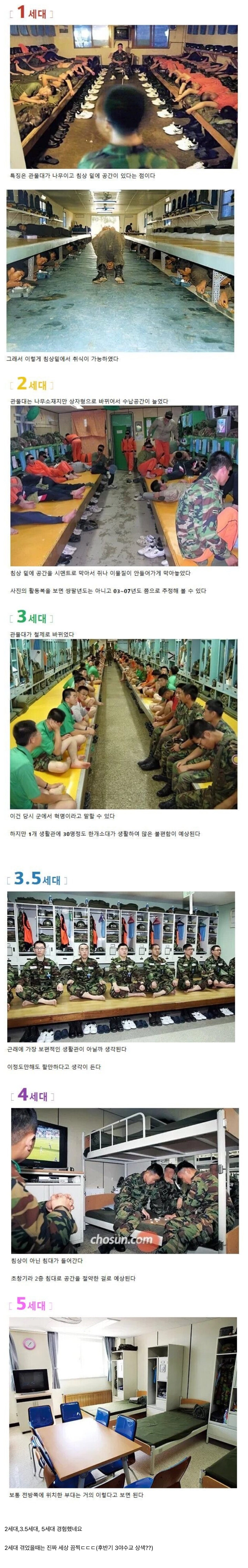 세대별 군대 내무반(생활관) 모습...jpg