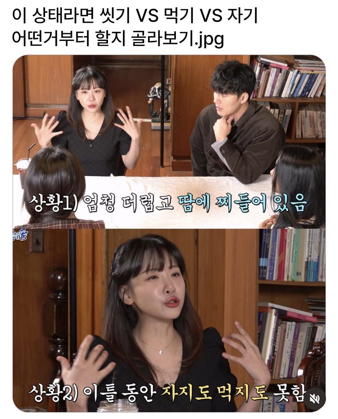 씻기 먹기 자기 중 어떤 것부터 할지 골라보자