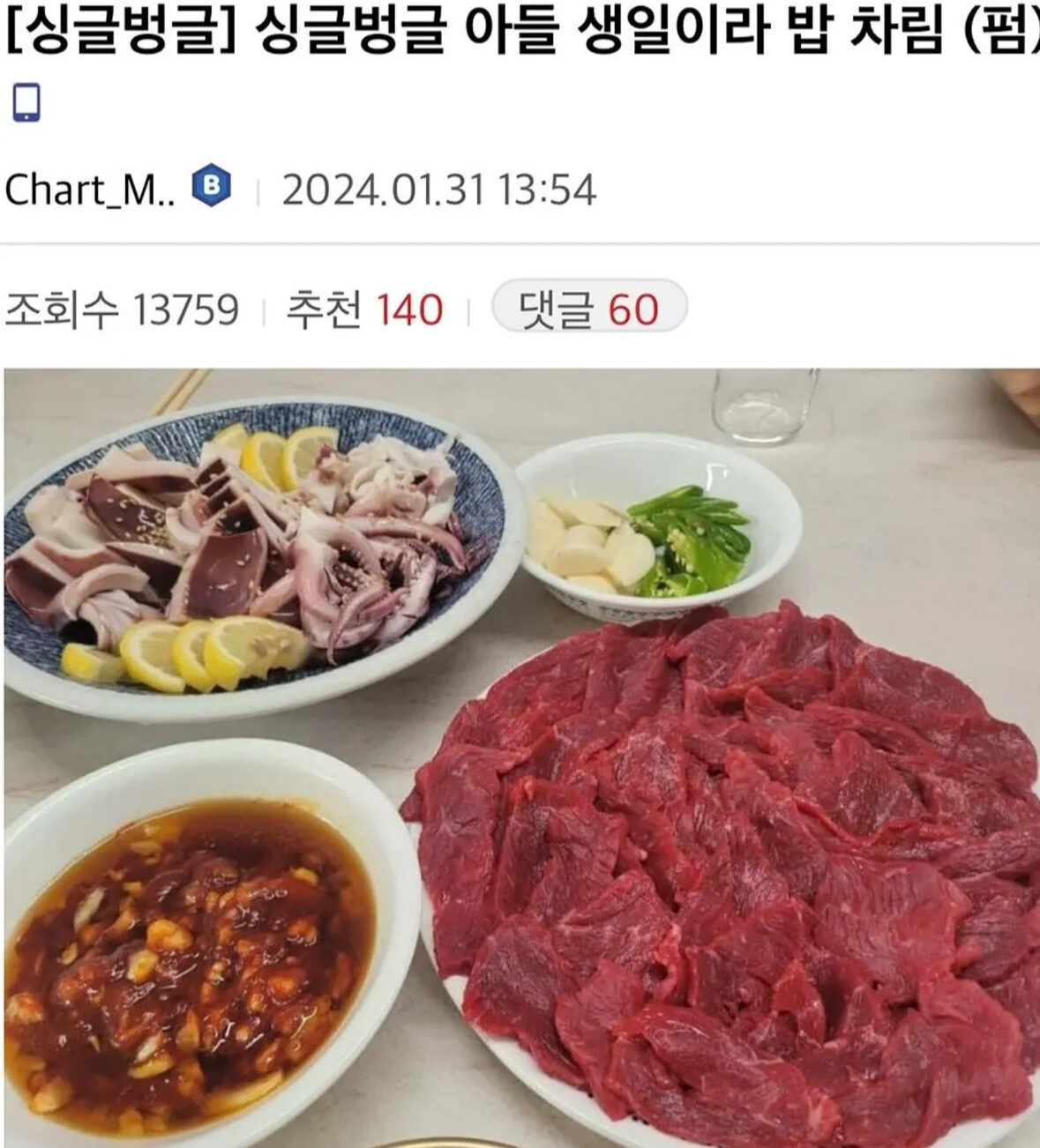 아들 생일상 차린 아버지