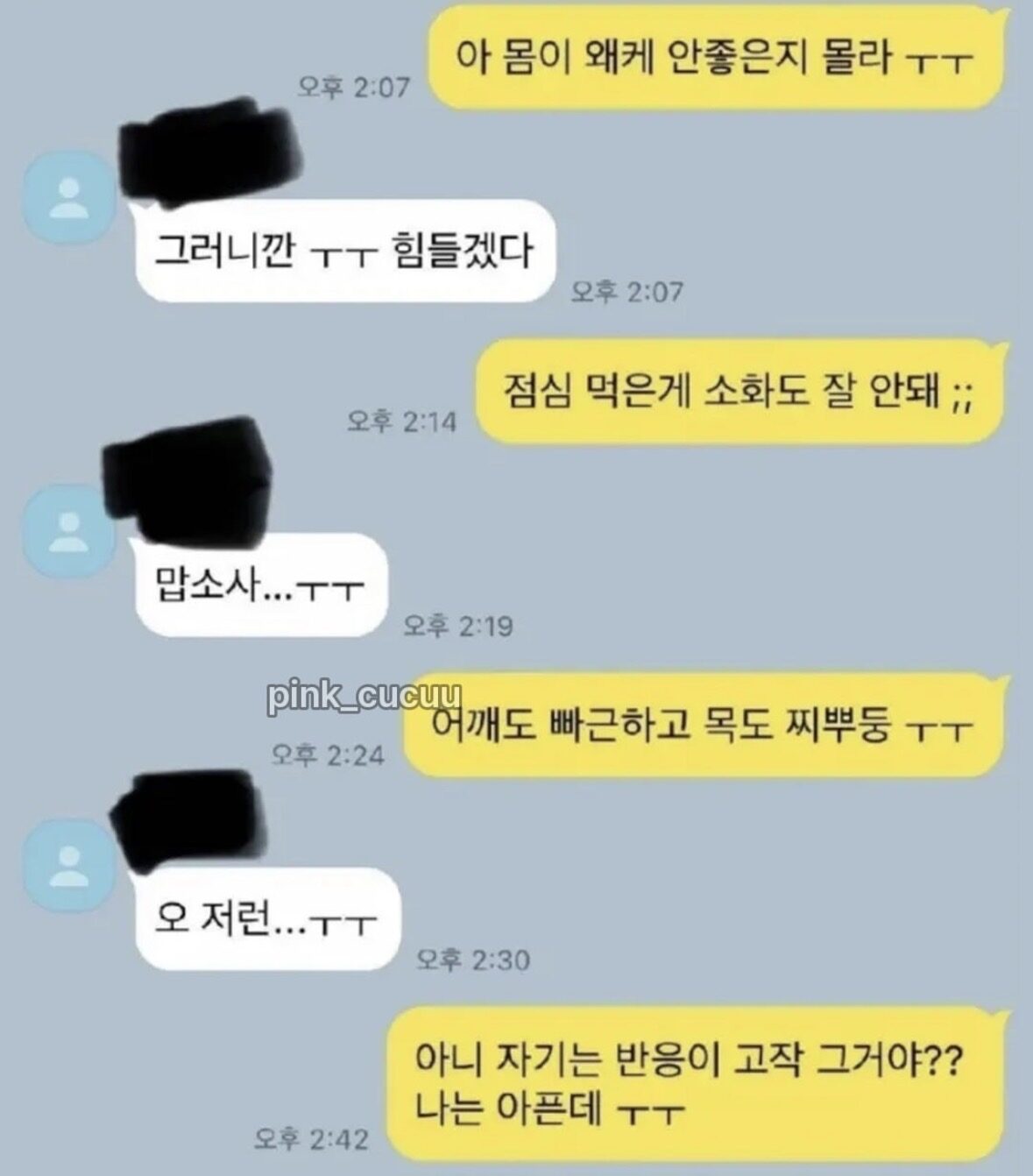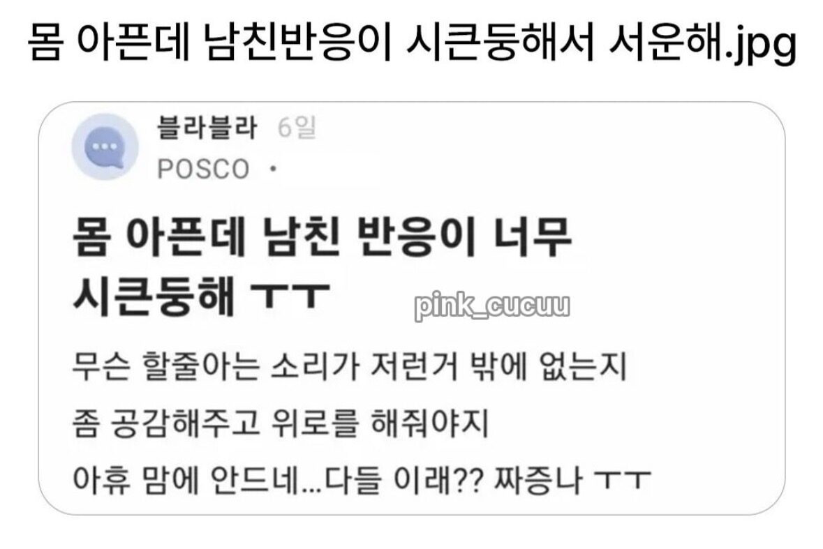아픈데 남자친구 반응 때문에 서운한 여자
