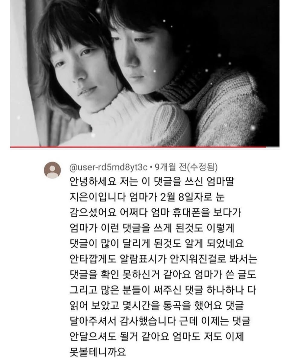어느 유튜브 영상에 달린 댓글 (슬픔주의)