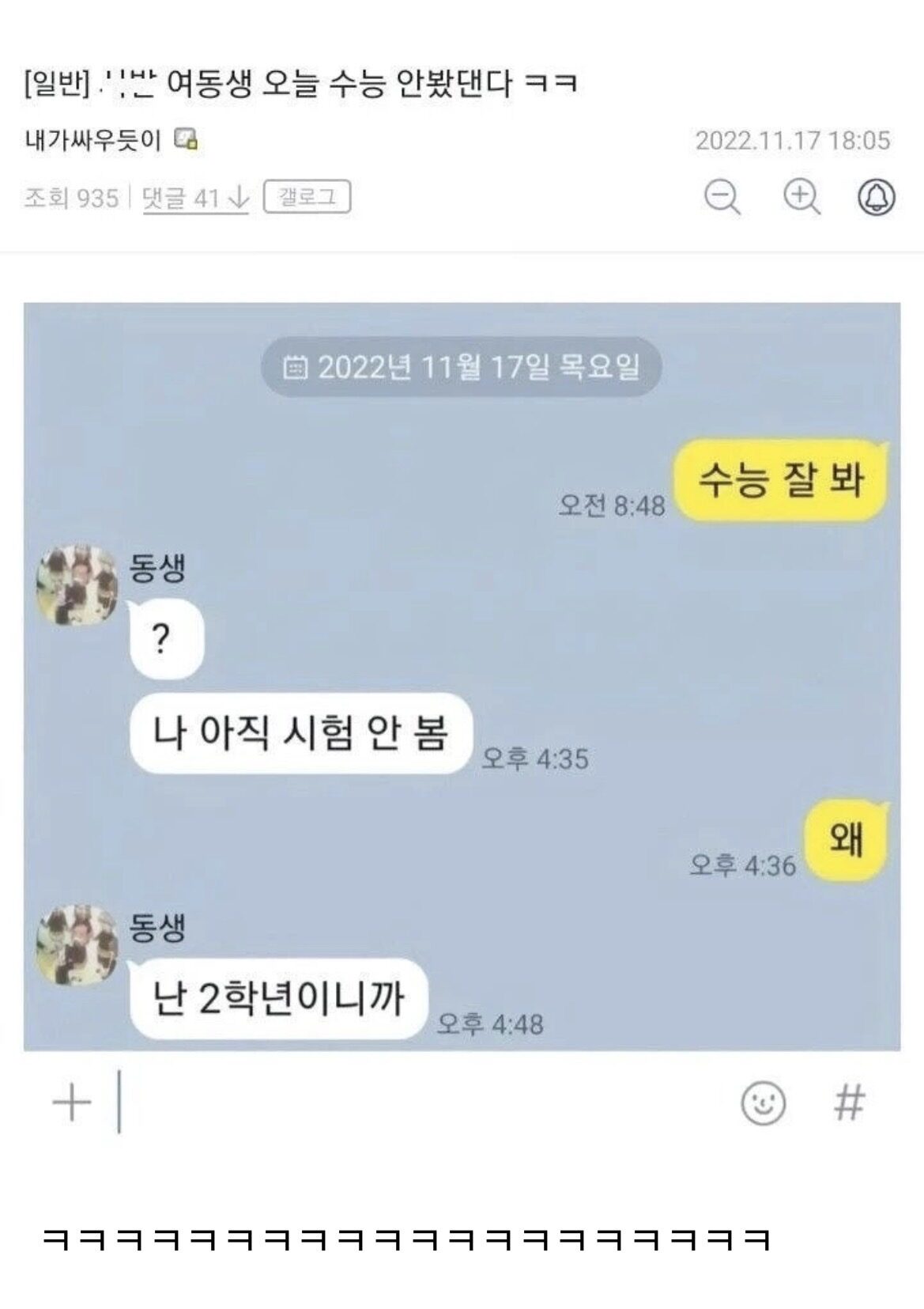 여동생이 수능을 안봤단걸 알게된 오빠