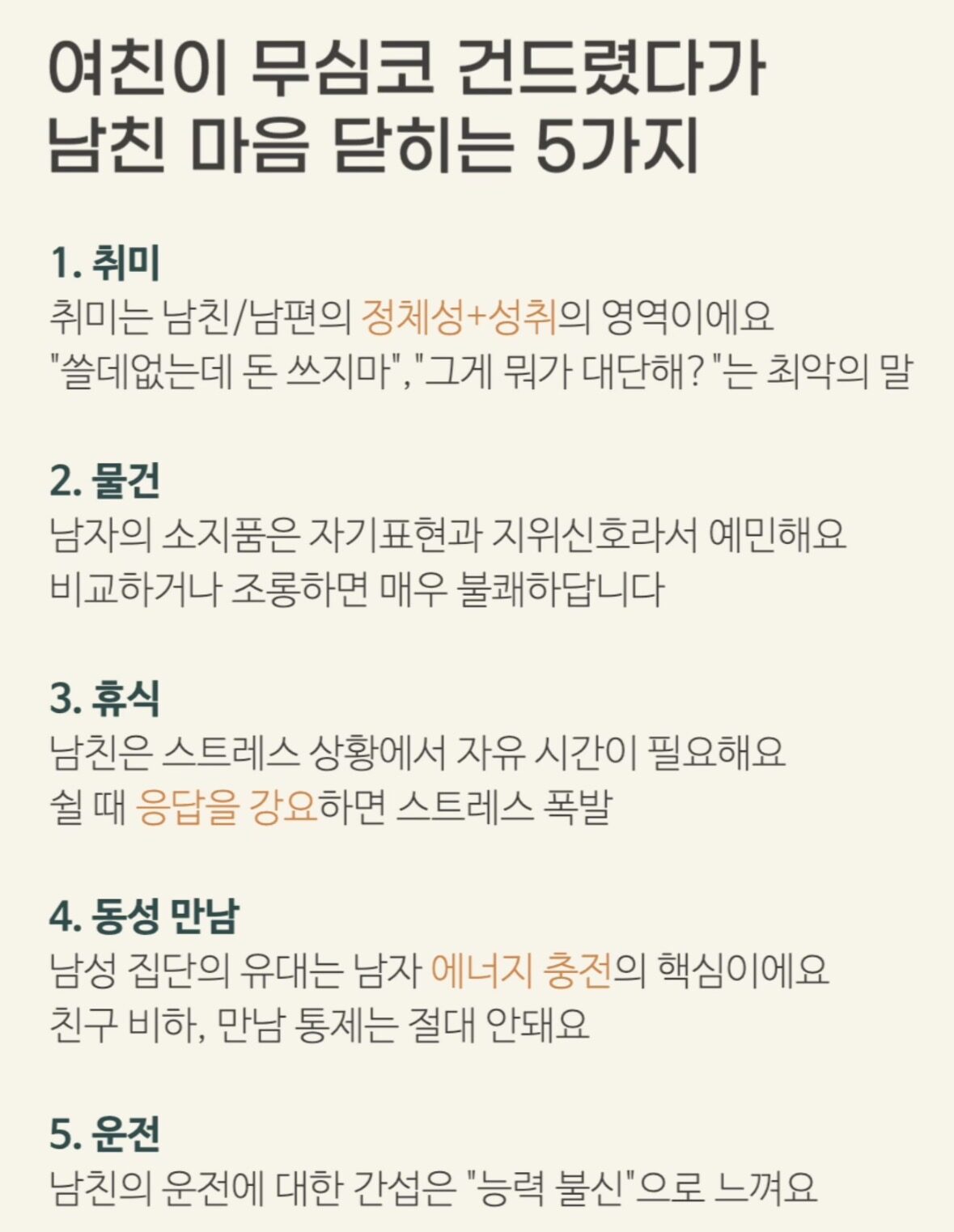여자친구가 무심코 건드렸다가 남자친구 마음 닫히는 행동