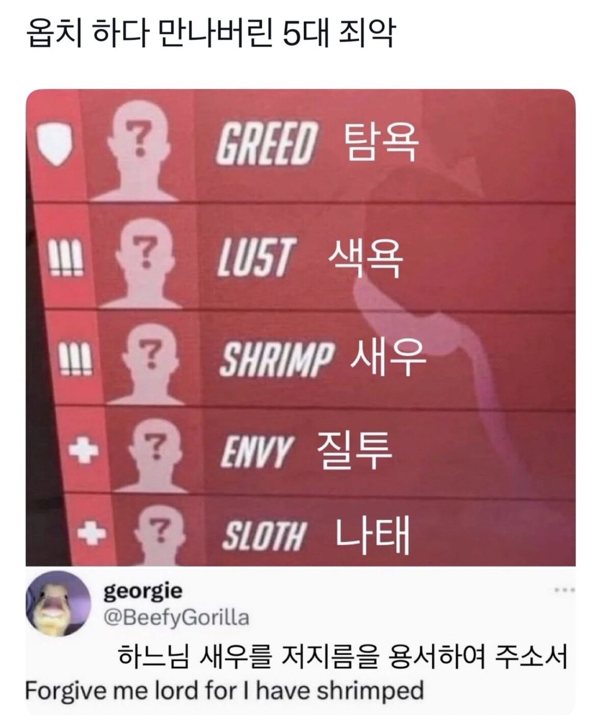 옵치하가 만난 5대 죄악