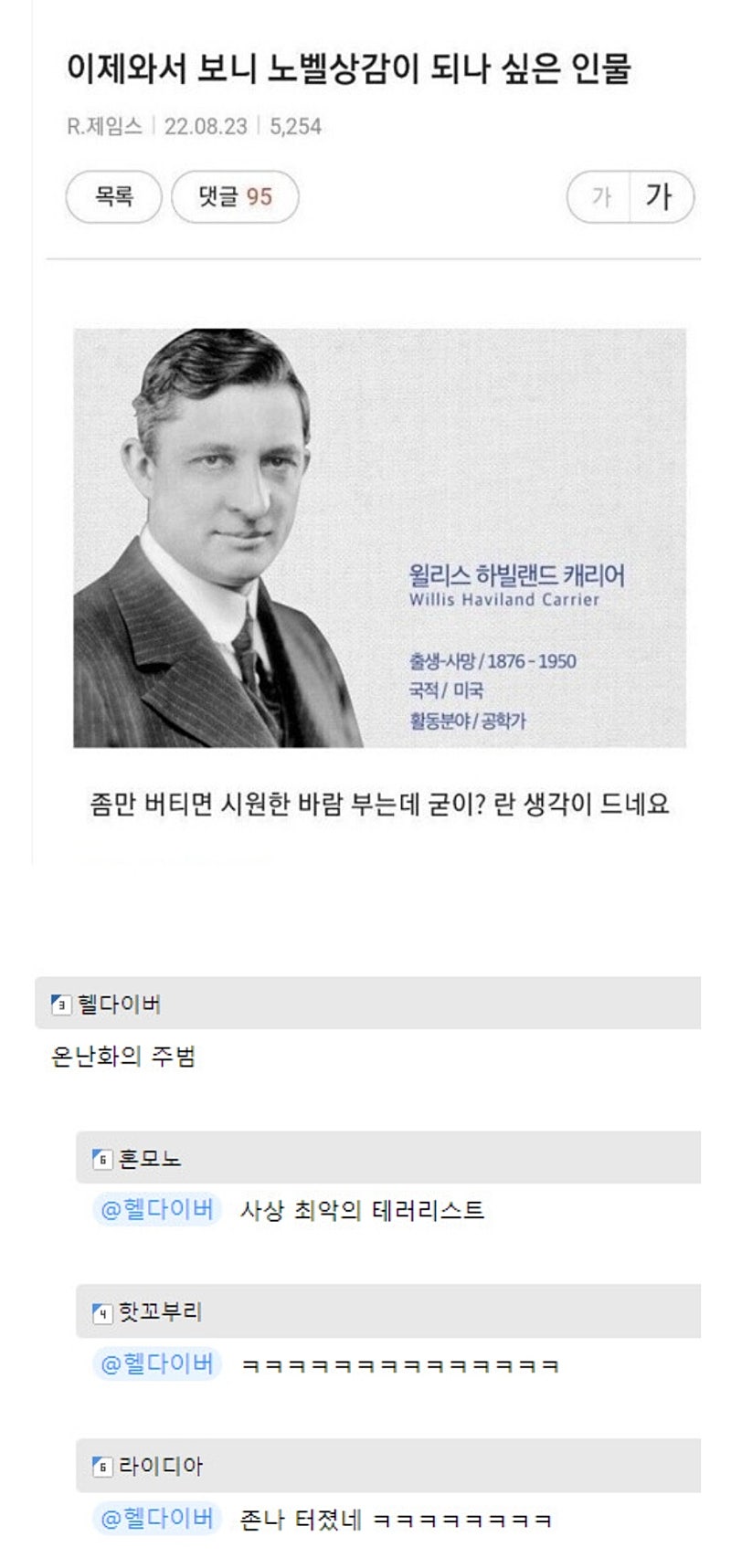이제와서 보니 노벨상감이 되나 싶은 인물