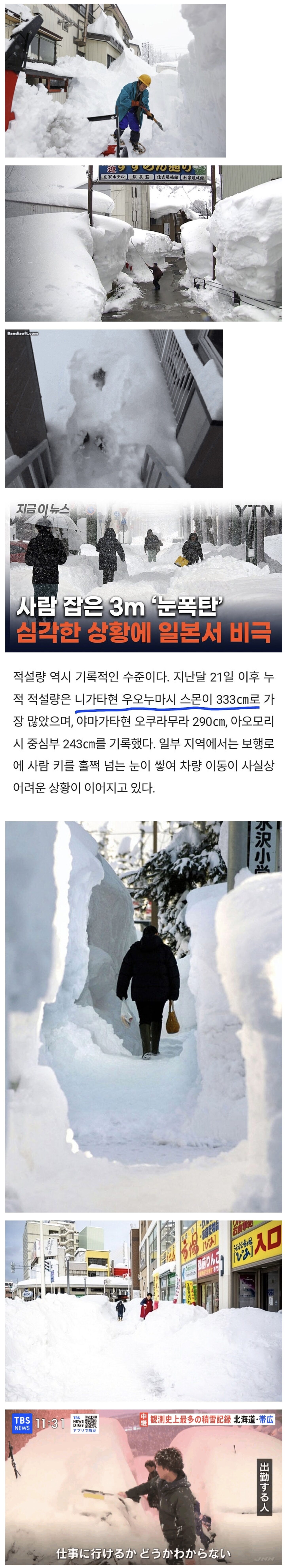 일주일 3m 눈폭탄 쏟아진 일본 근황
