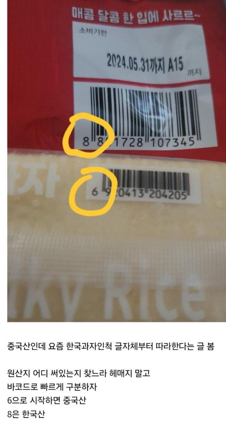 중국산과 국내산 과자 구별법