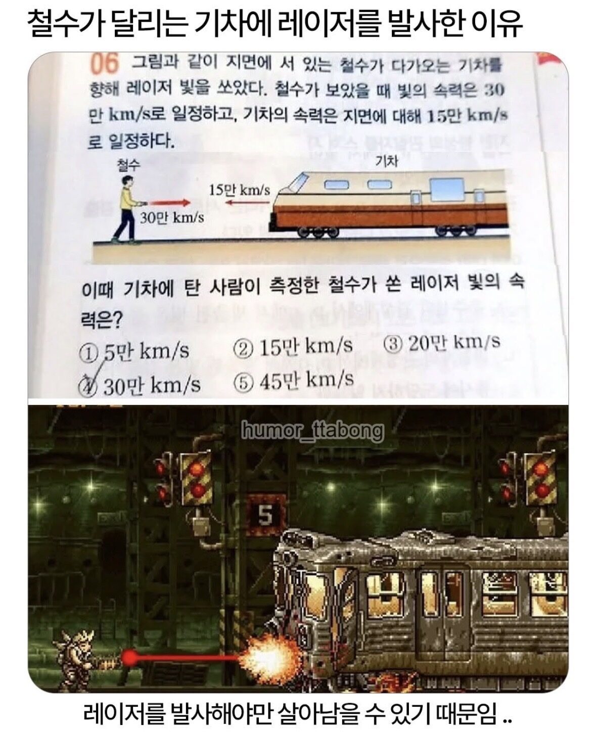 철수가 달리는 기차에 레이저를 발사한 이유