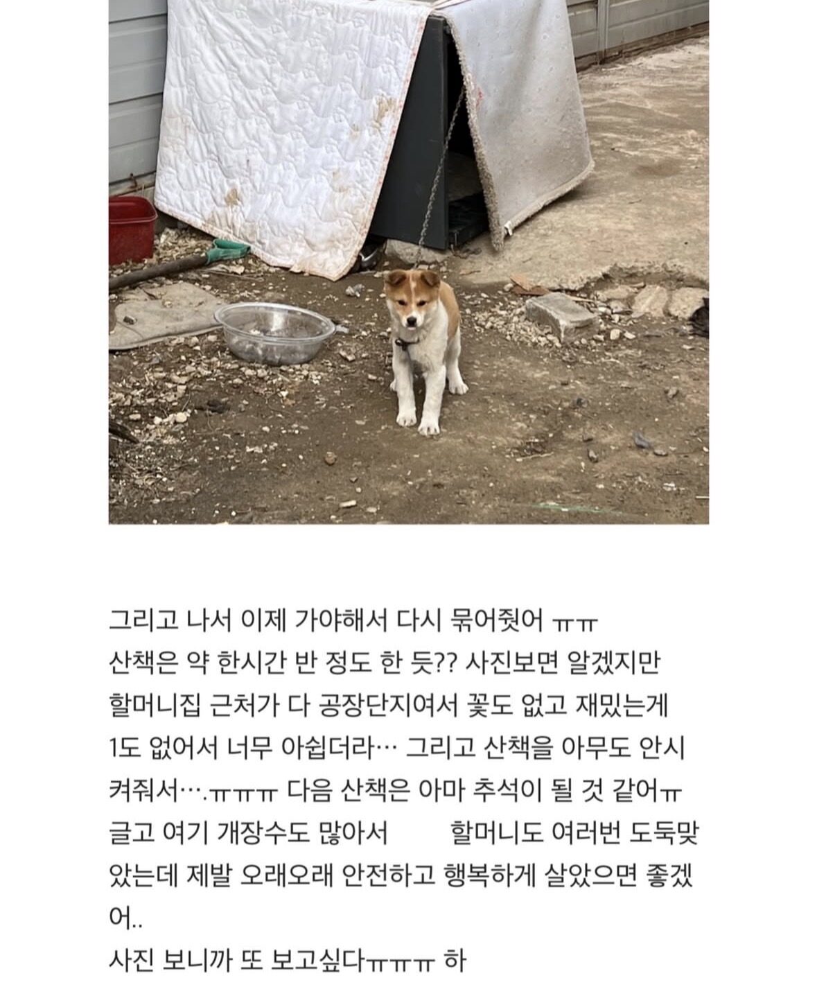 할머니댁 시골개 산책 시켜주고 옴