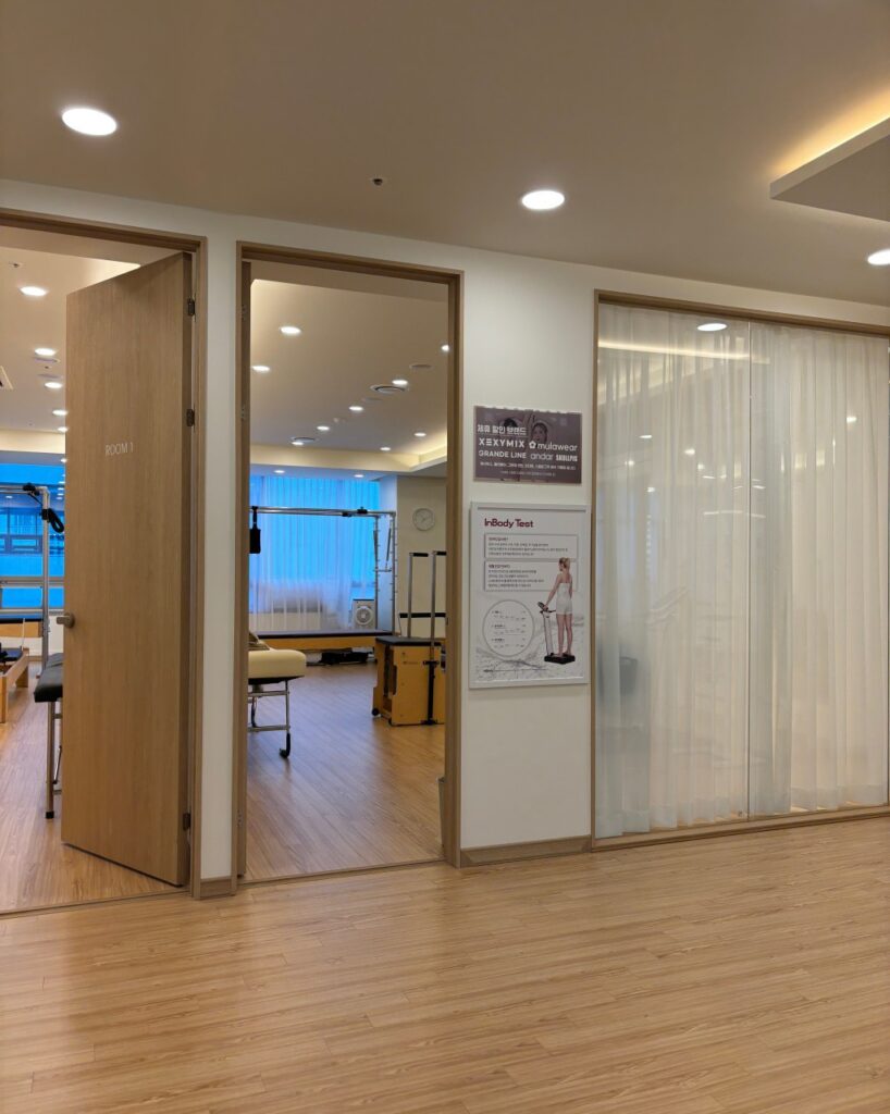 – 개인룸(1:1, 듀엣레슨) 1개, 요가/플라잉 룸 1개, 그룹레슨룸 2개, 별도 탕비실 있음